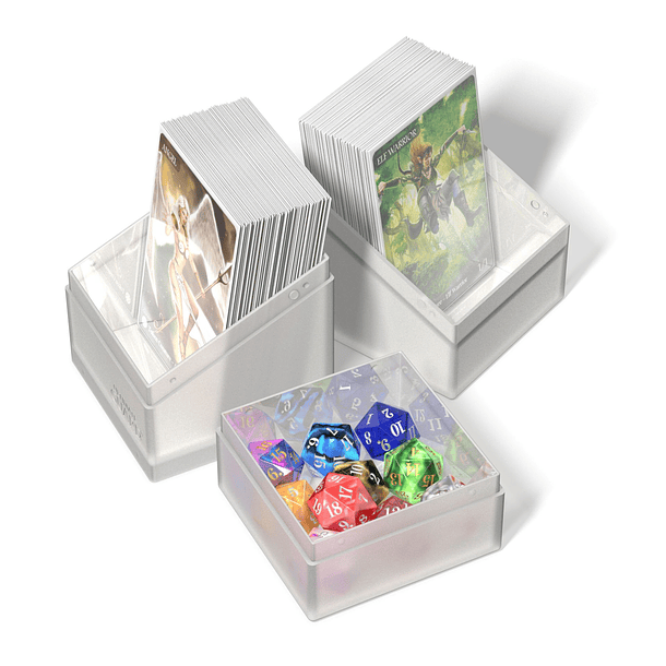Ante la enorme demanda popular, te presentamos el Boulder'n'Tray 100+. Esta caja combina la robustez del Boulder con la flexibilidad de una bandeja adicional para tus dados y accesorios, muy parecido al famoso Monolith. Nuestro Boulder'n'Tray 100+ se ha mejorado con un acabado suave al tacto para un agarre cómodo y un uso duradero durante todas tus partidas