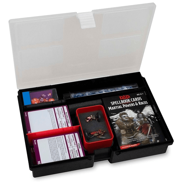 Esta caja de juego también funciona muy bien para sus juegos de rol favoritos como Pathfinder RPG y Dungeons & Dragons. Puede contener cartas para tus hechizos y poderes junto con tus minifiguras (espuma no incluida) y sets de dados.